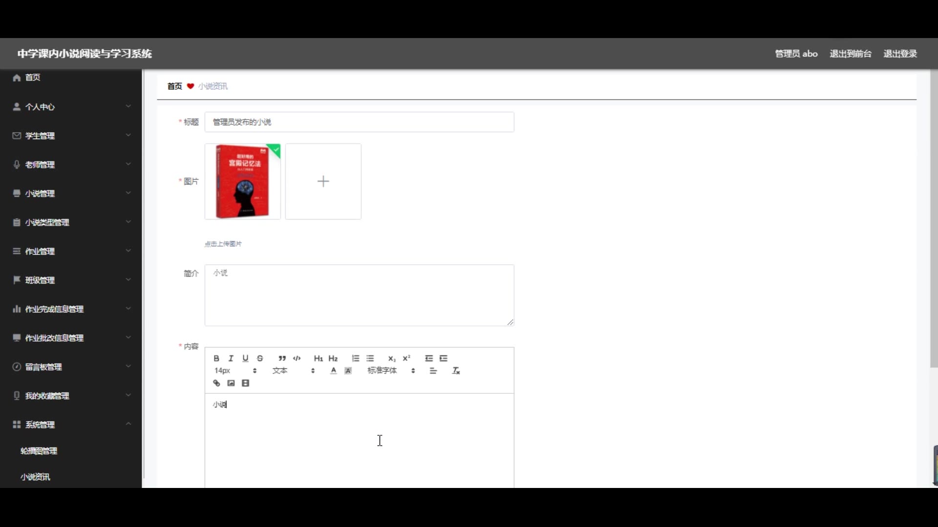ssm+vue中学课内小说阅读与学习系统源码和论文317