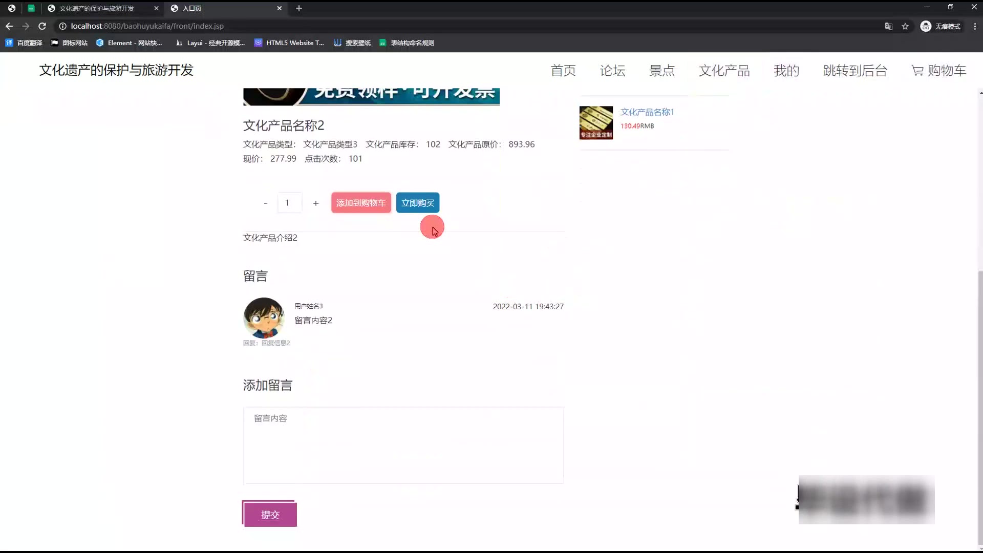ssm+jsp文化遗产的保护与旅游开发源码和论文585