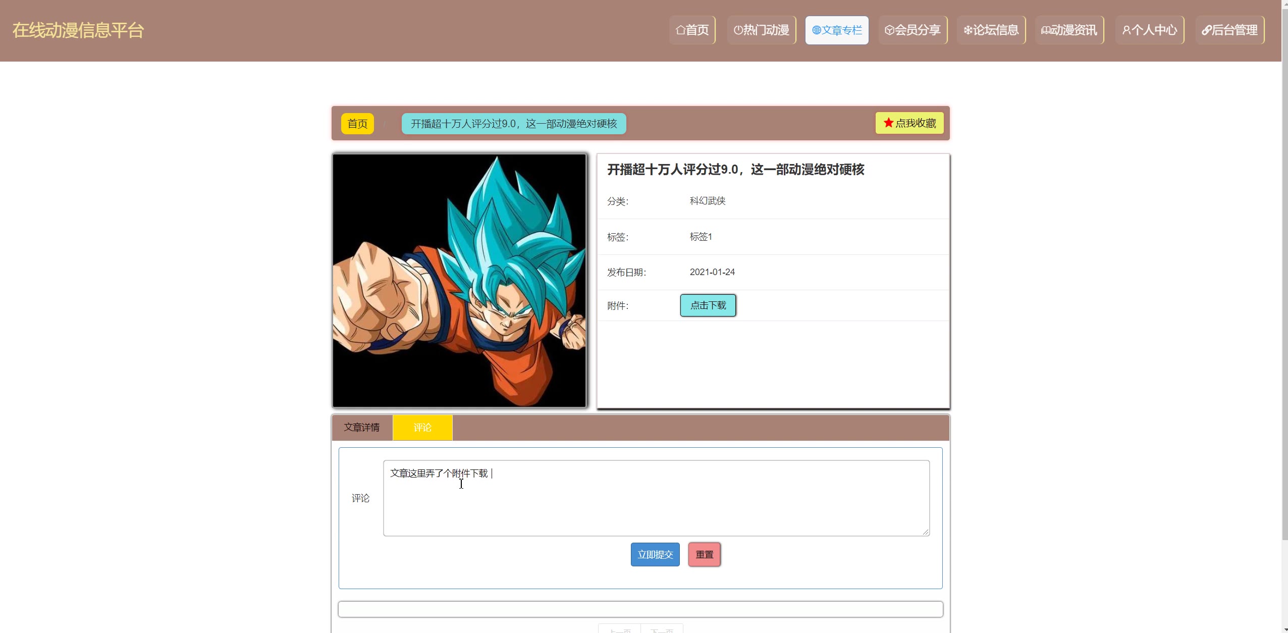 基于springboot在线动漫信息交流分享平台源码和论文424