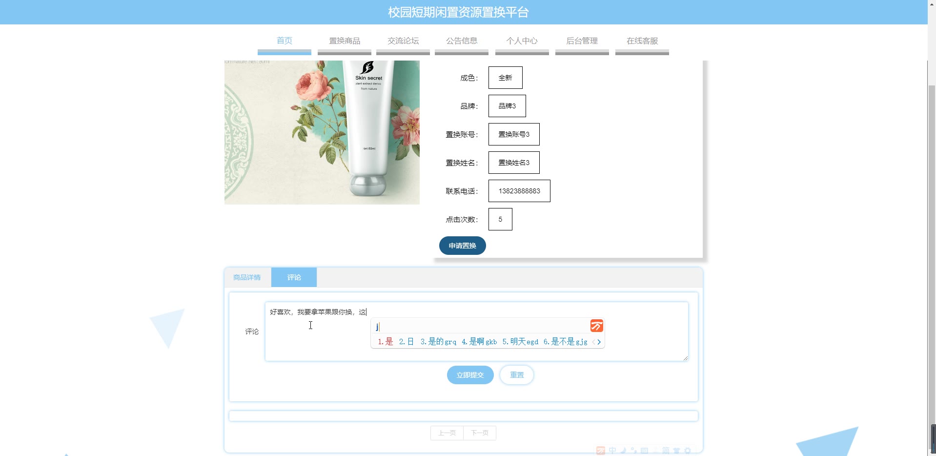 基于ssm校园短期闲置资源置换平台源码和论文755