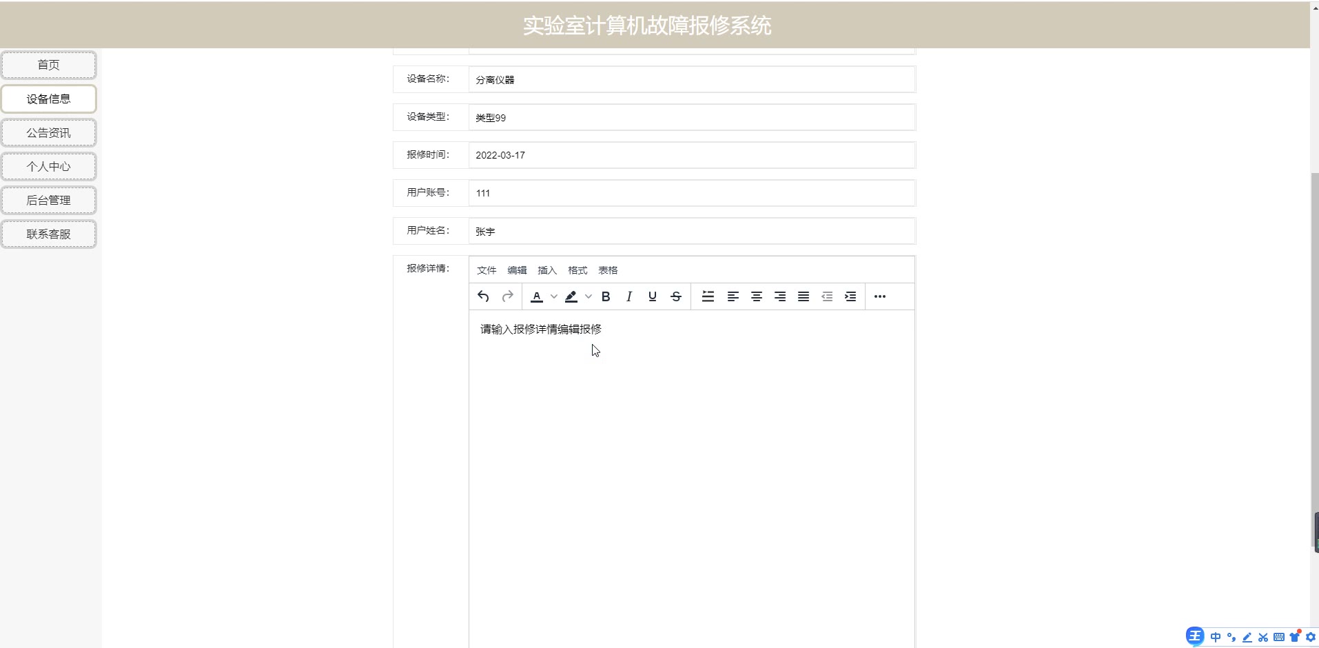 基于ssm+jsp实验室计算机故障报修系统源码861