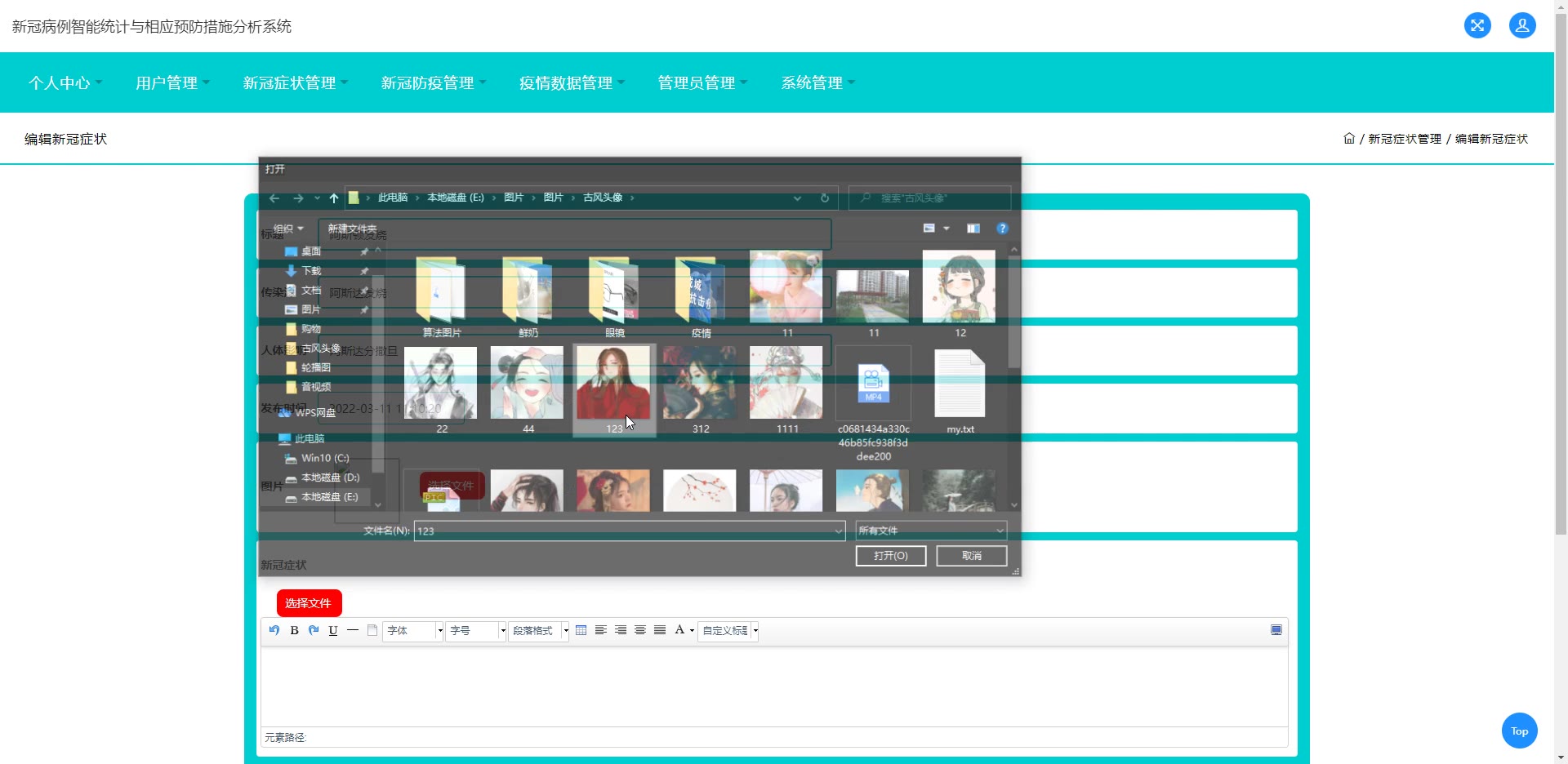 基于ssm+jsp新冠病例智能统计与相应预防措施分析系统源码和论文885