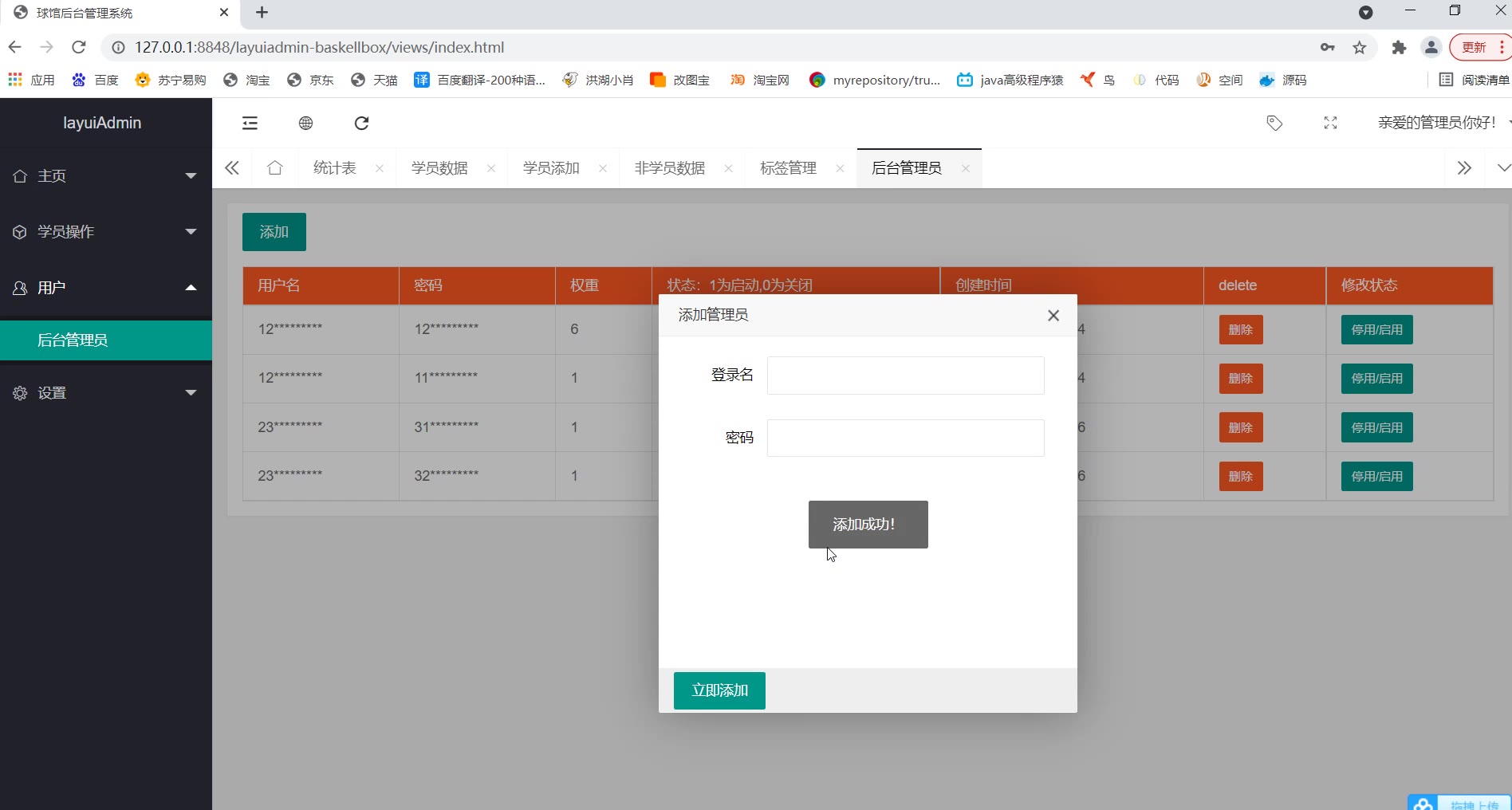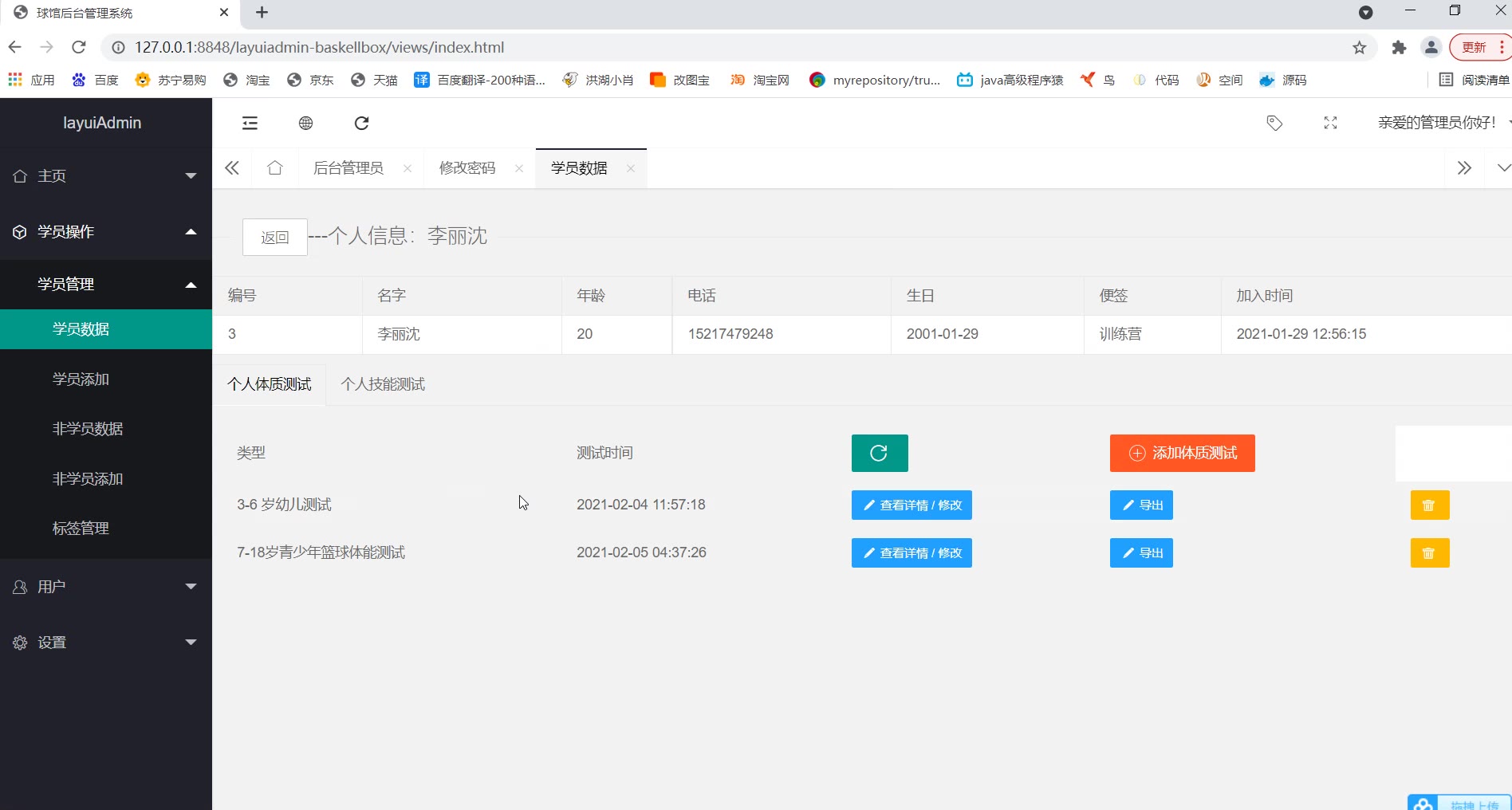 【379】基于springboot+layui前后端分离的球馆学员管理系统演示视频