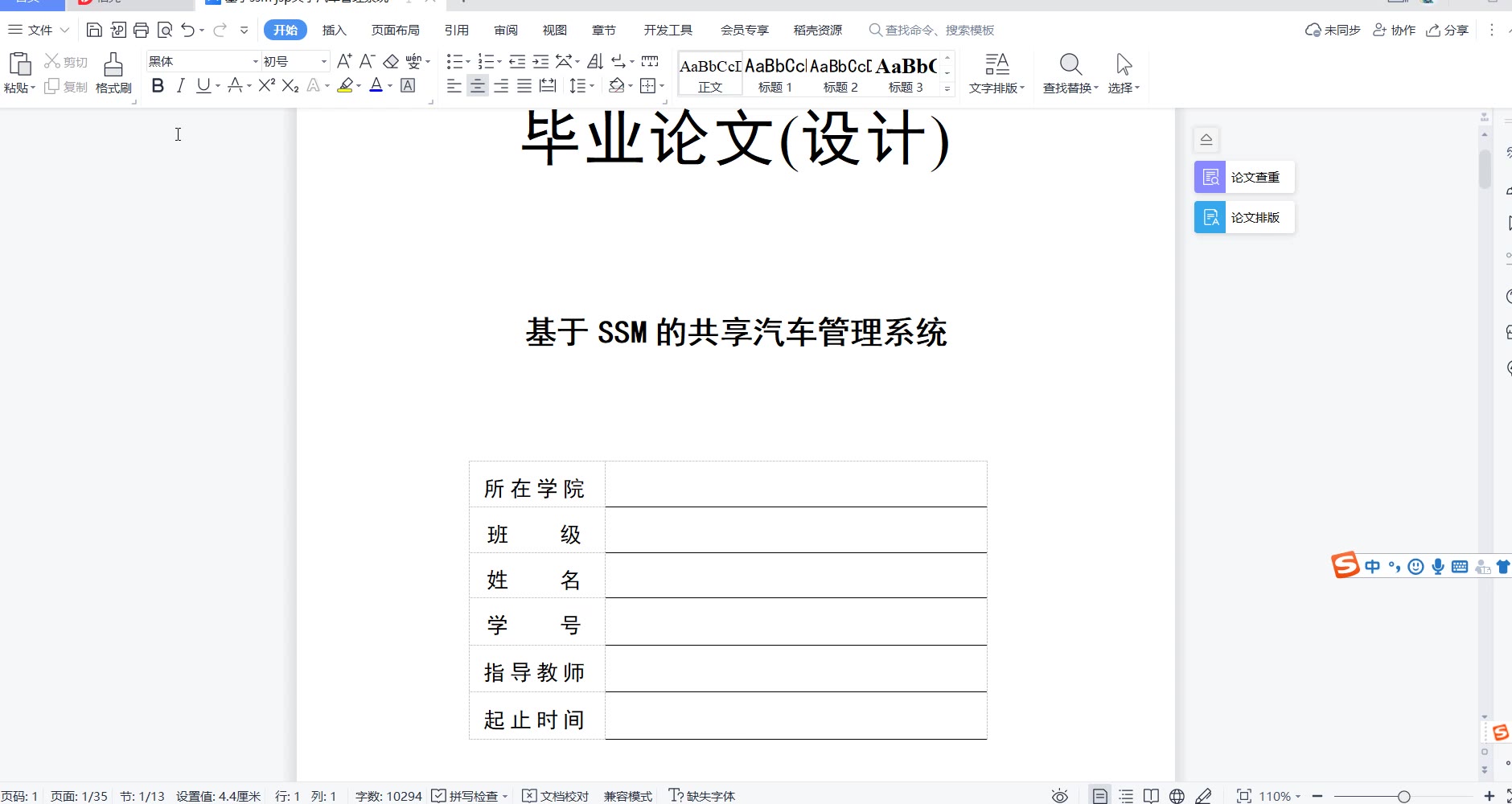 • (3)初稿 答辩PPT 开题报告 任务书 论文降重