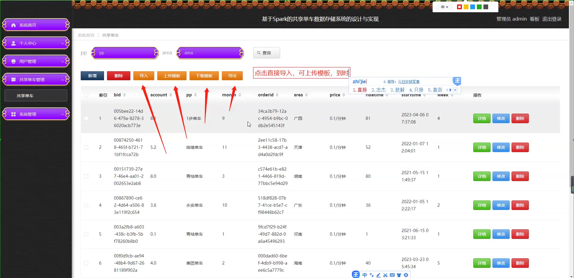 springboot vue基于Spark的共享单车数据存储系统源码和论文704
