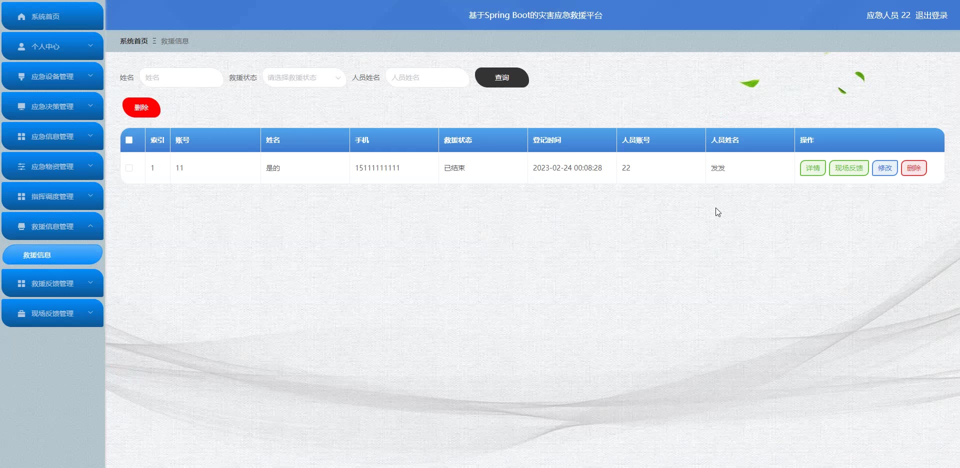 基于SpringBoot vue灾害应急救援平台源码和答辩PPT论文976