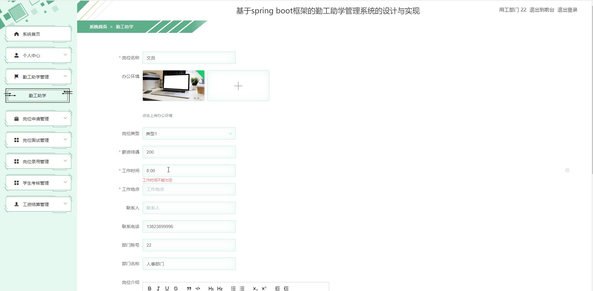 基于springboot vue勤工助学管理系统源码1065