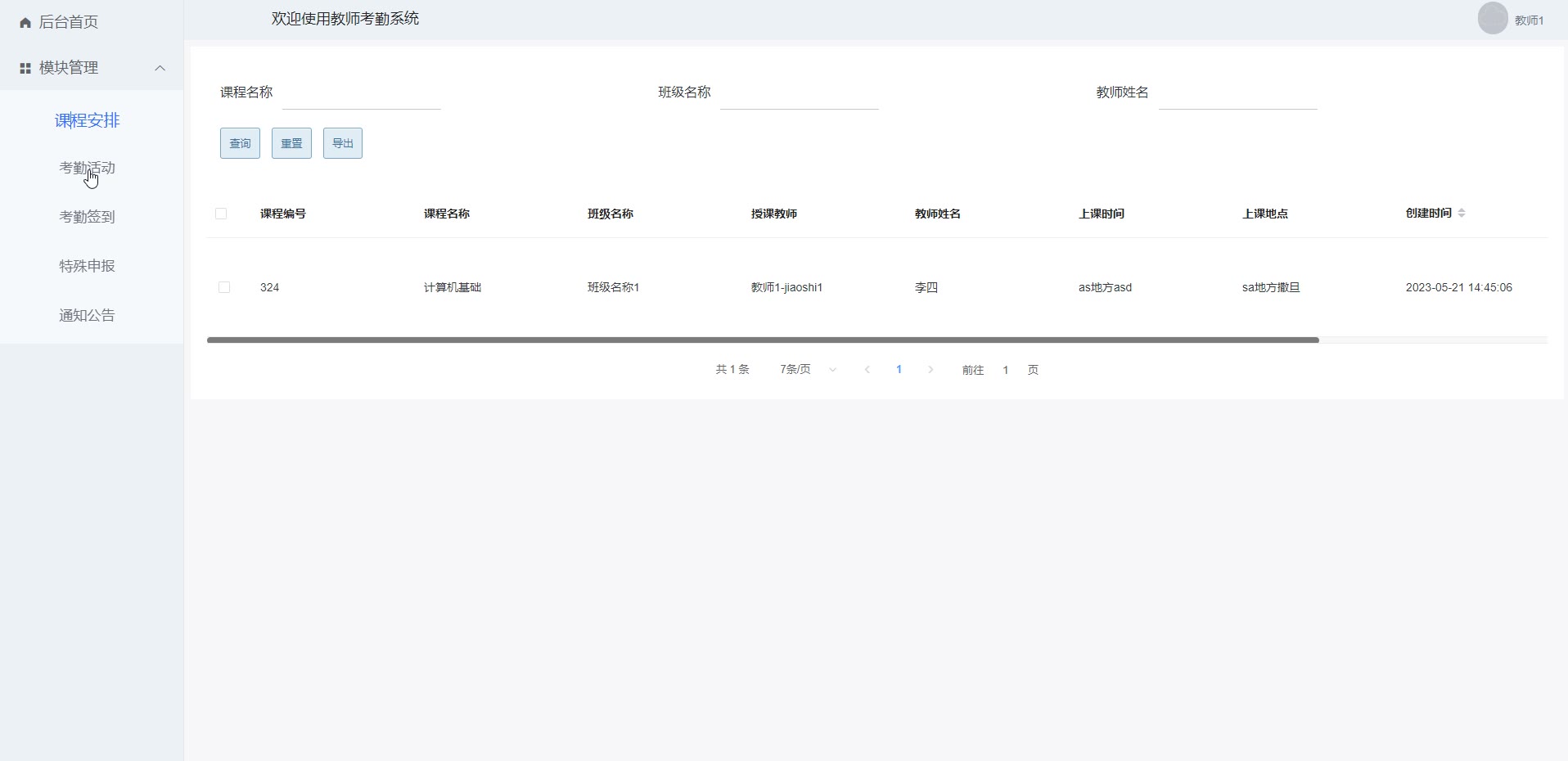 springboot vue教师考勤系统源码1125