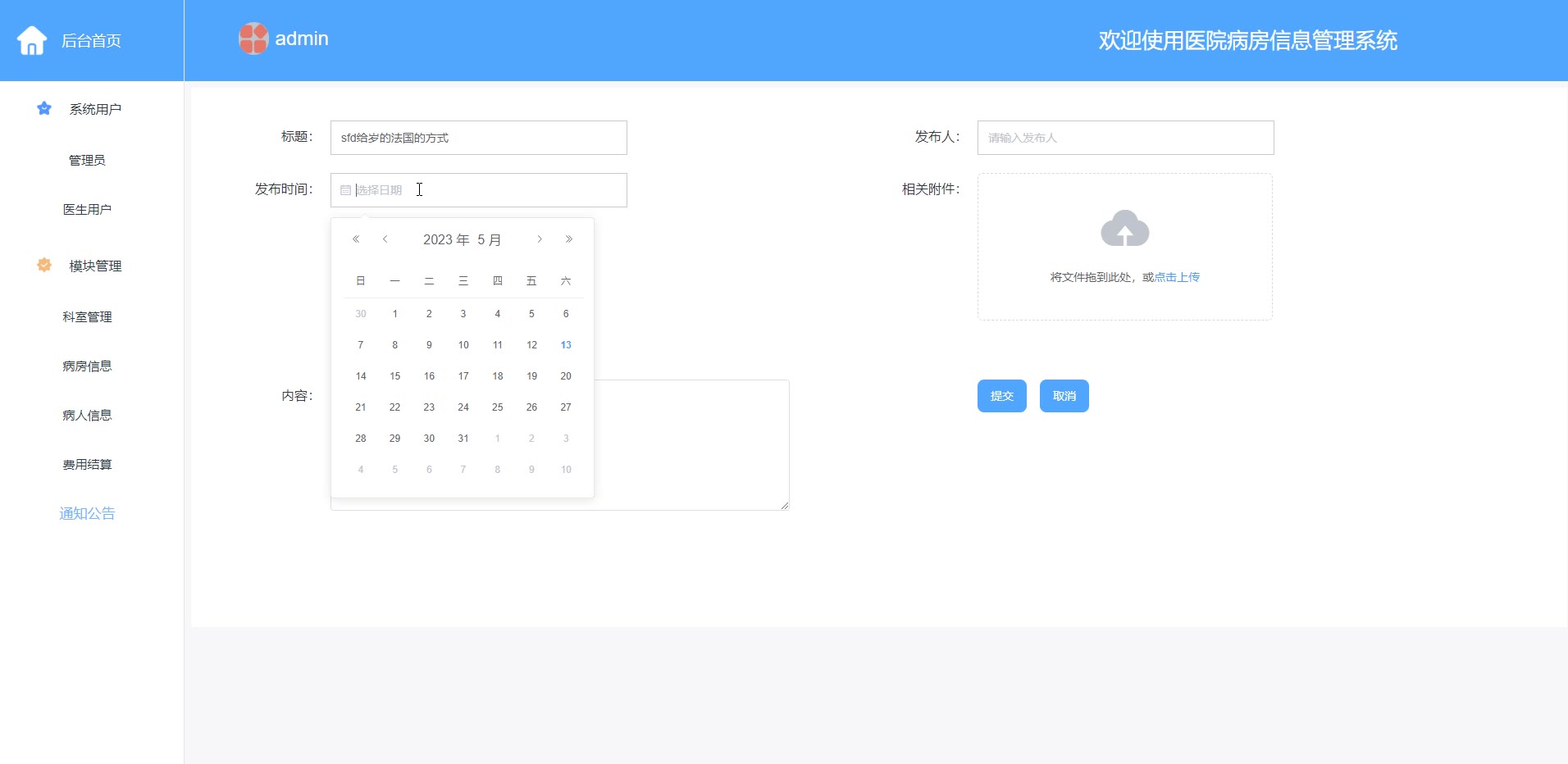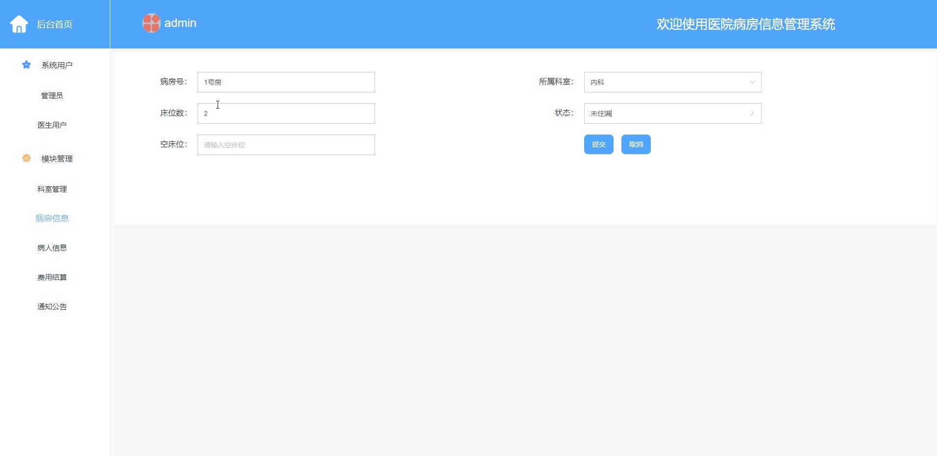 springboot vue医院病房信息管理系统源码和答辩PPT论文1147