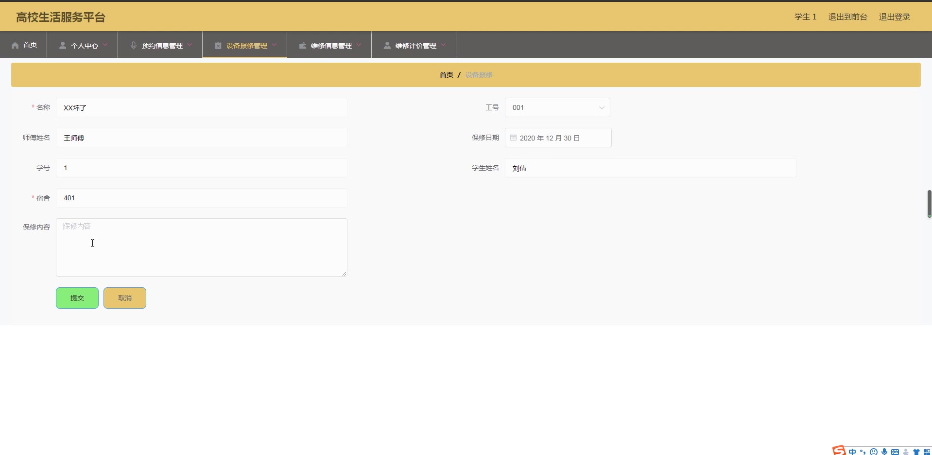 基于ssm高校生活服务平台源码和答辩PPT论文1150