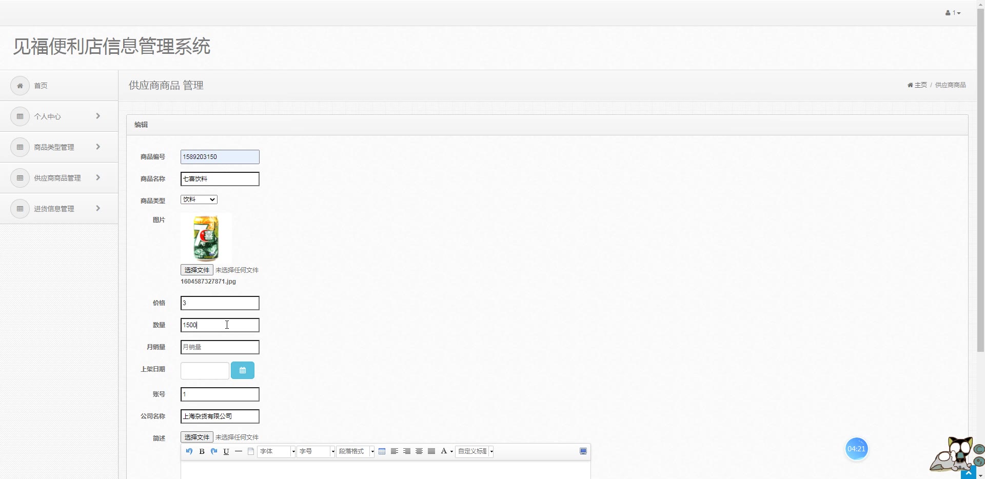 基于ssm jsp便利店供货商管理系统源码和答辩PPT论文1241
