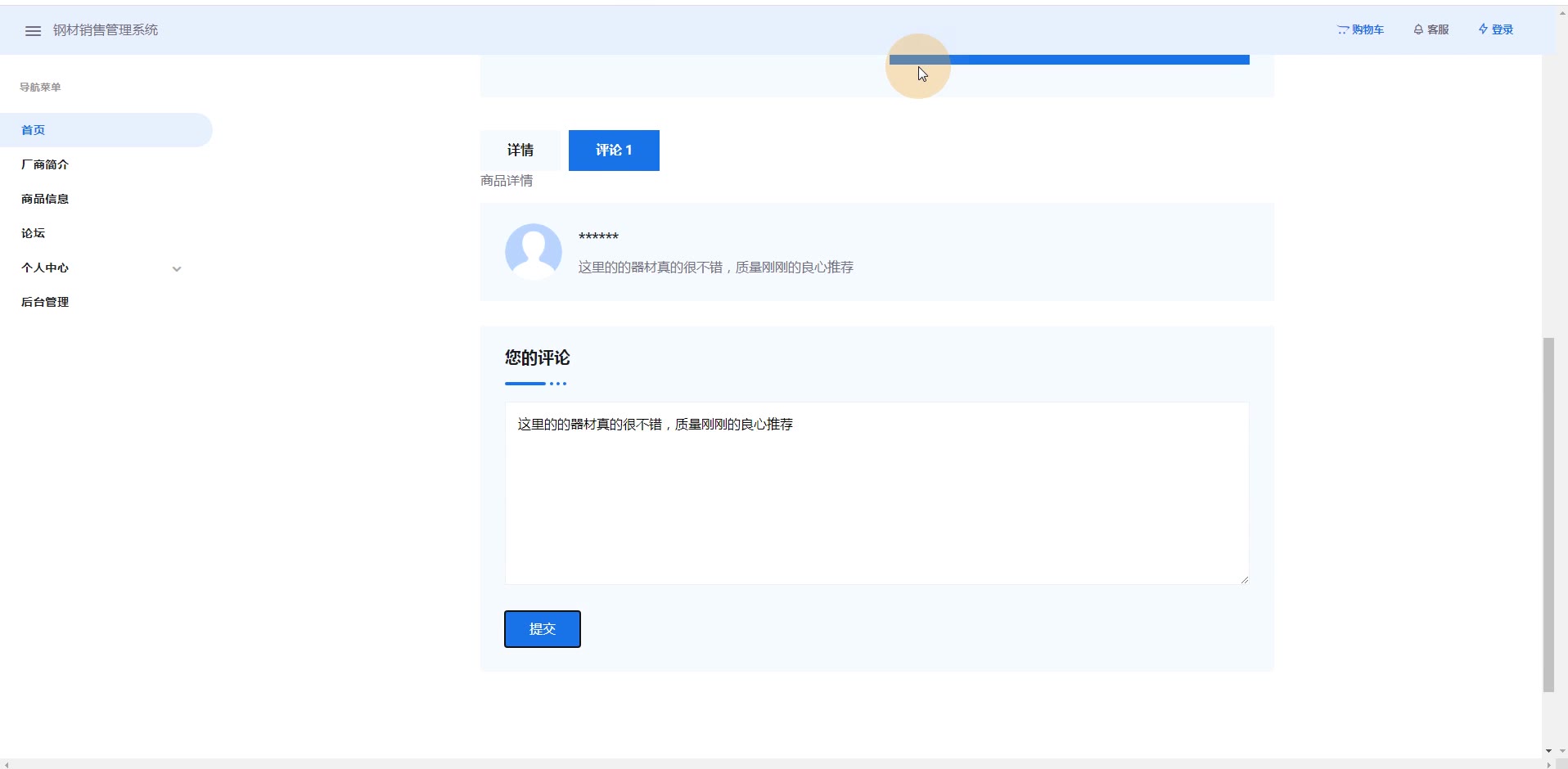 基于ssm钢材销售管理系统源码和答辩PPT论文1277
