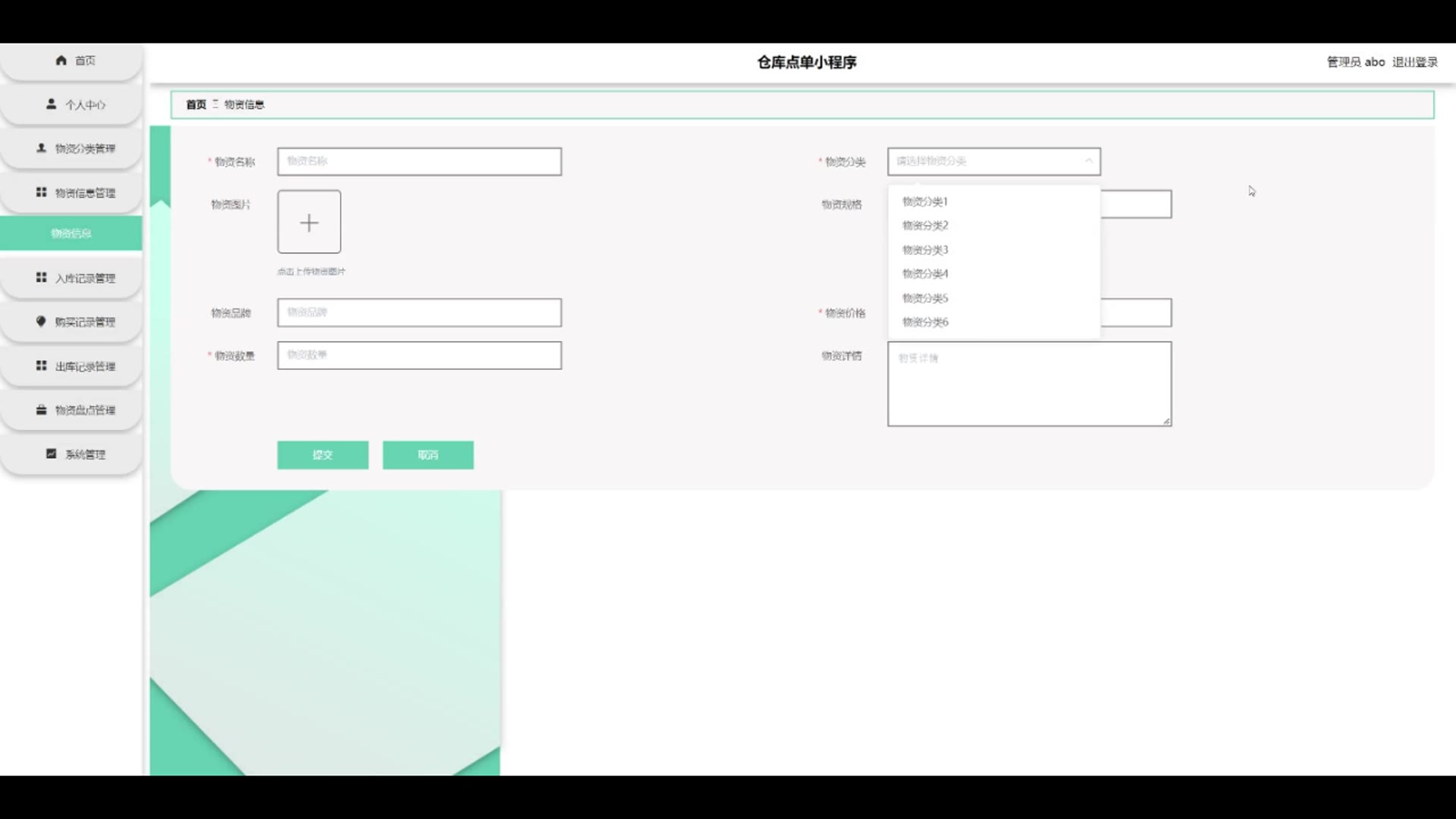 springboot仓库点单物资管理小程序源码372