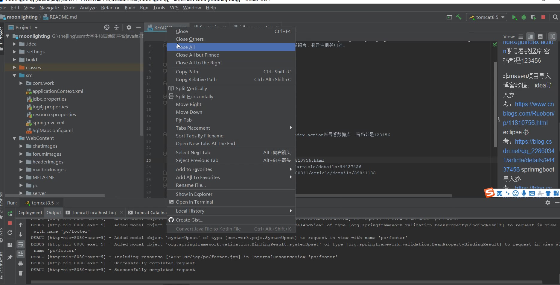 环境: jdk8 tomcat8.5