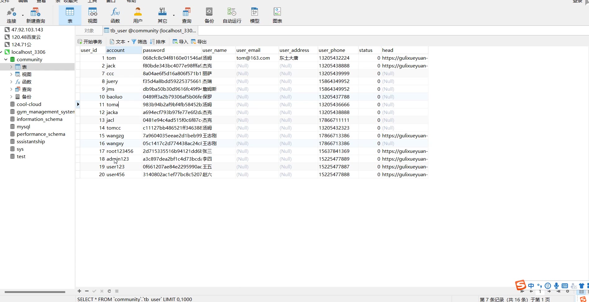 数据库链接工具:navcat,小海豚等