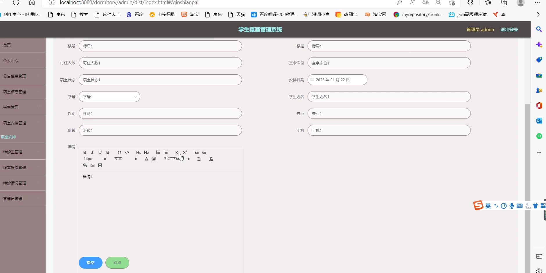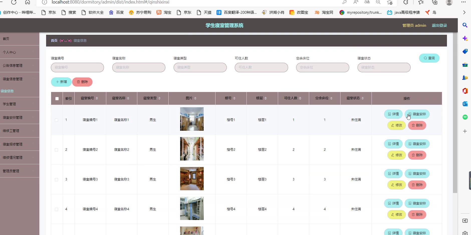 【697】基于ssm vue前后端分离学生寝室管理系统