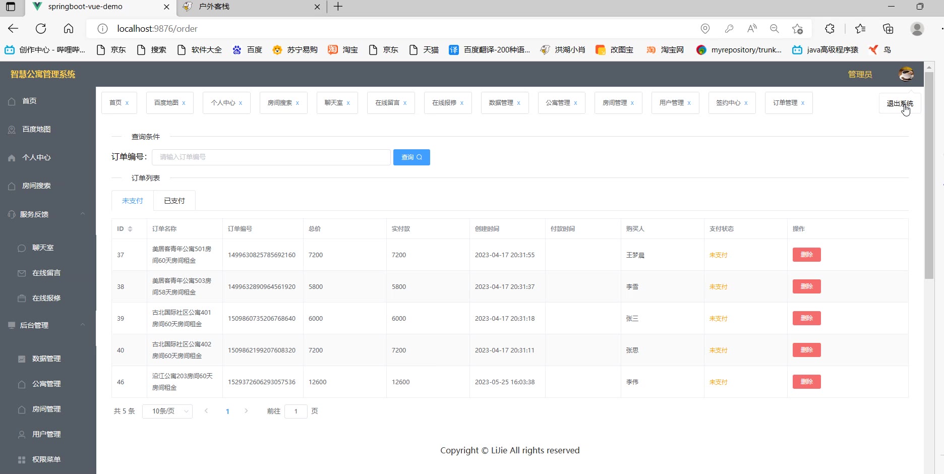 【728】基于springboot vue智慧公寓管理系统