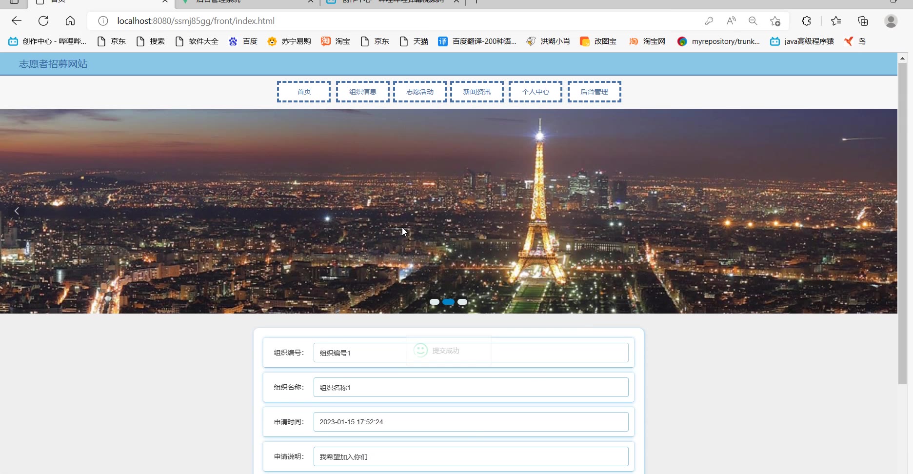 【782】基于ssm vue志愿者报名管理系统java志愿者招募网站源码和论文PPT