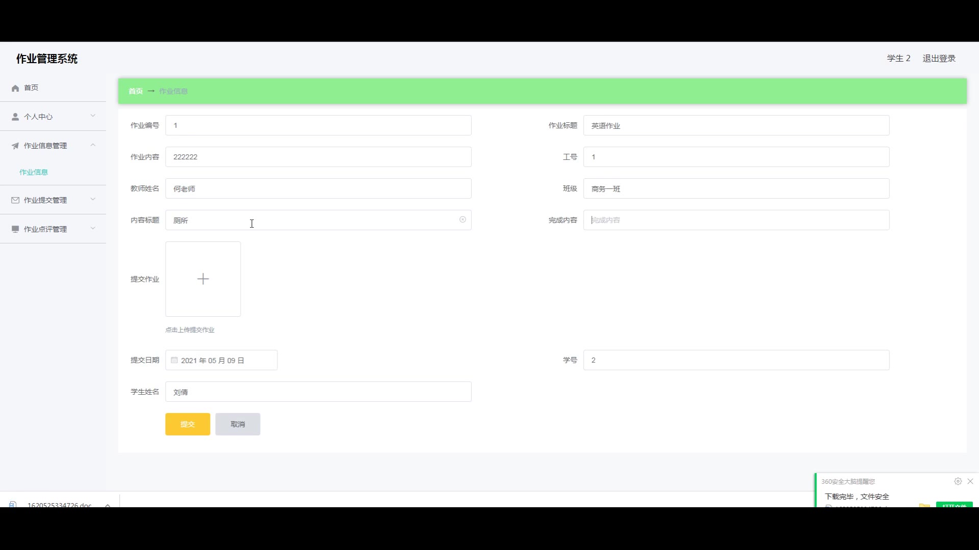 springboot作业管理系统源码和论文110