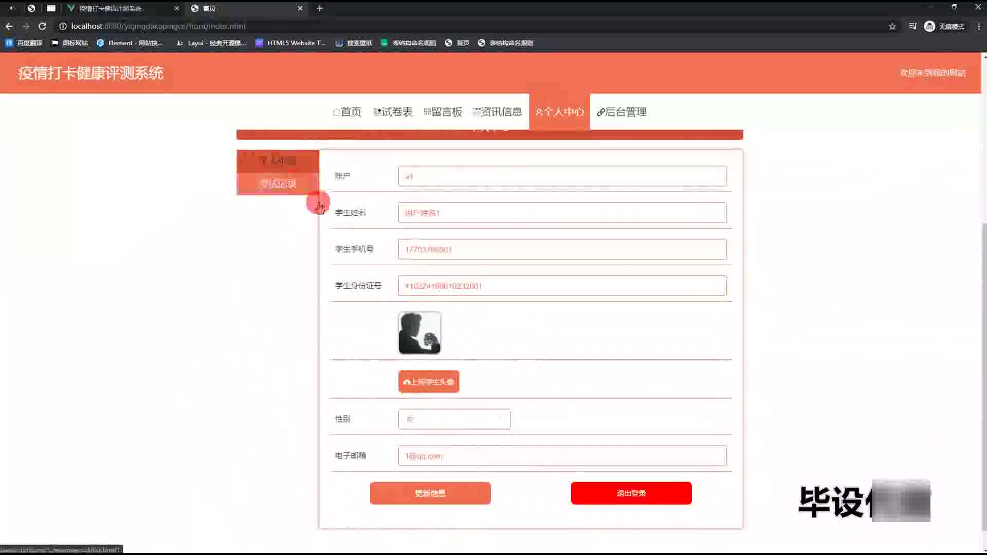 springboot疫情打卡健康评测系统源码和论文199