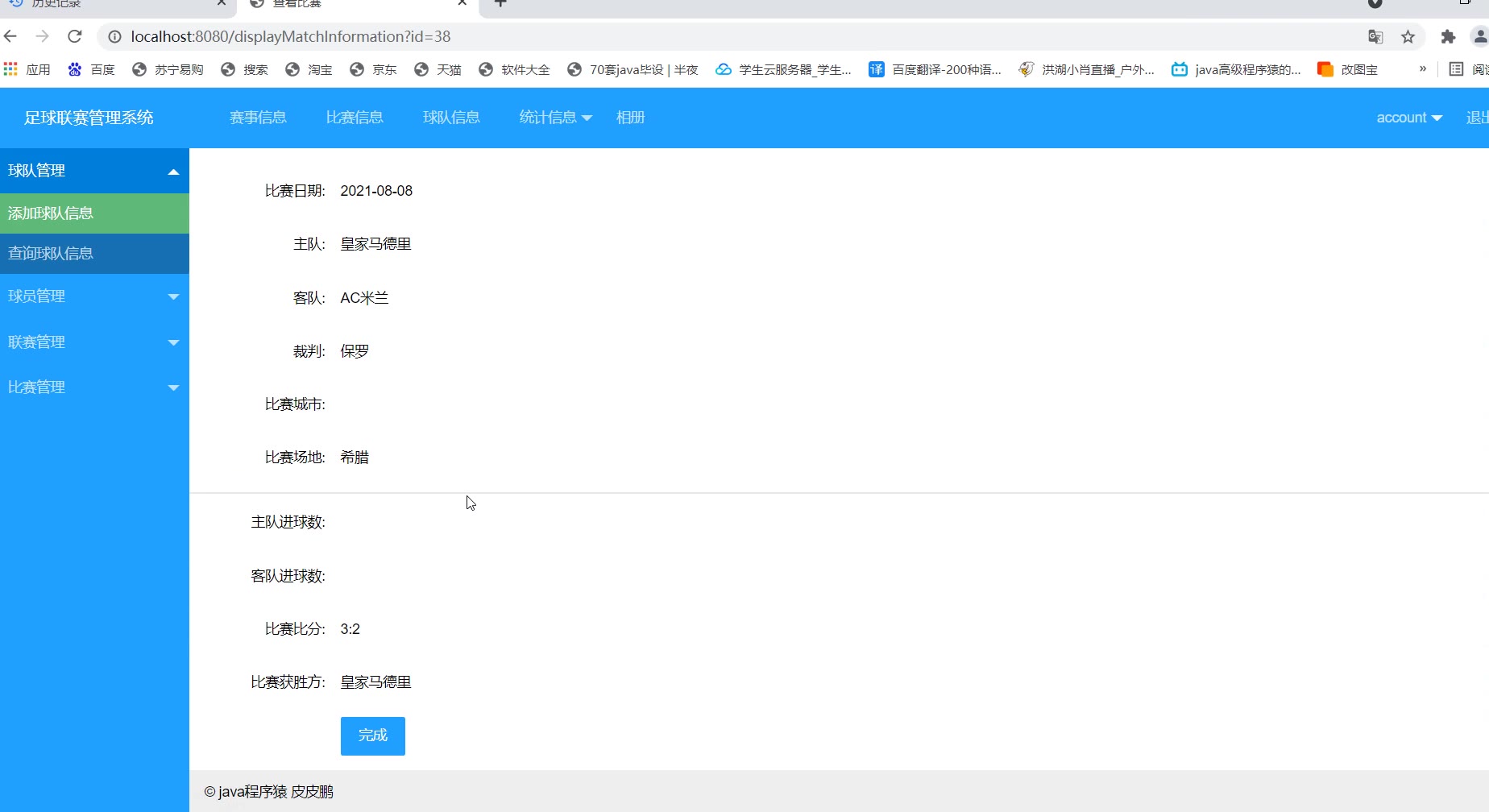 【296】SpringBoot+Layui足球联赛管理系统