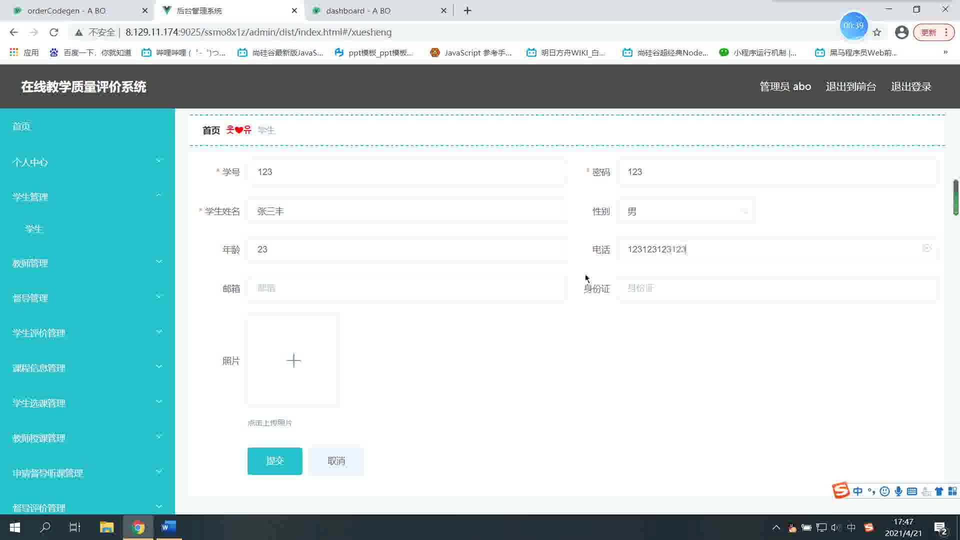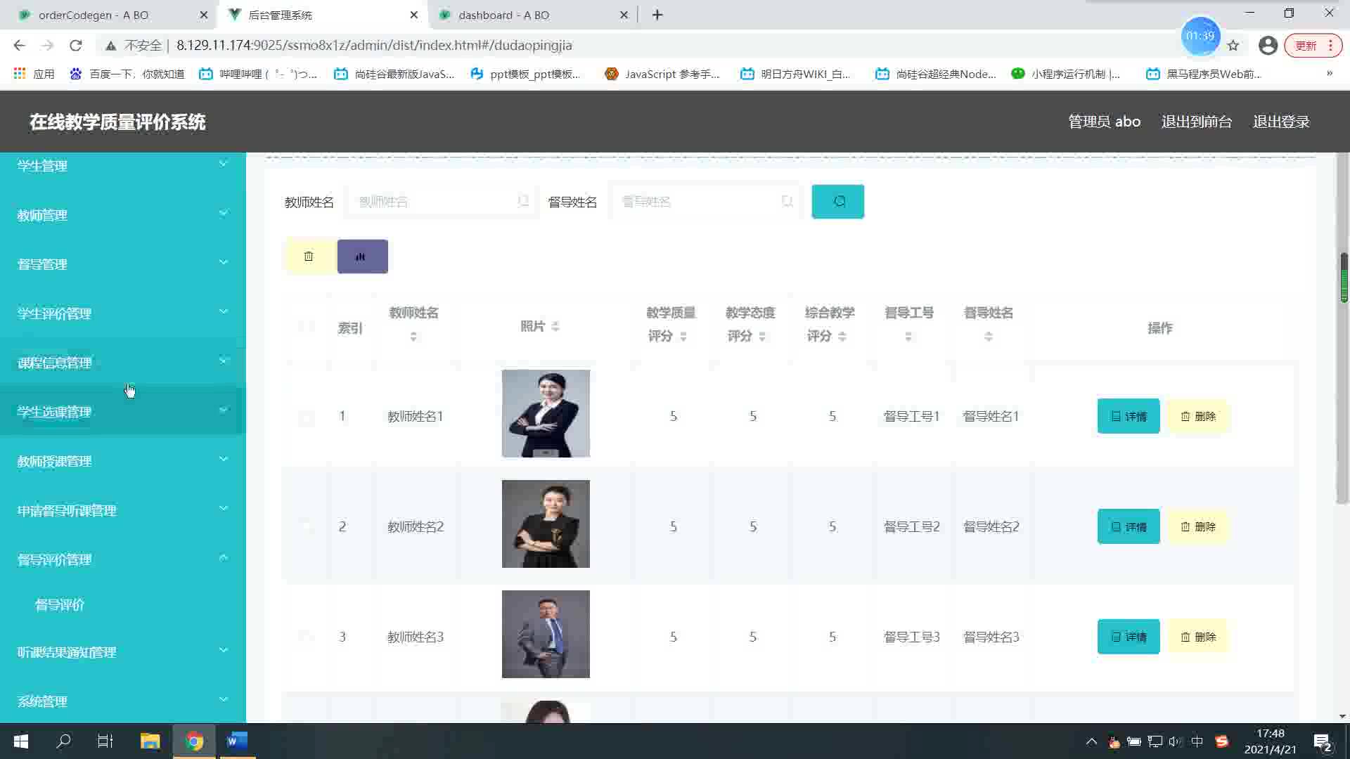 基于ssm+vue在线教学质量评价系统的设计与实现ssm278